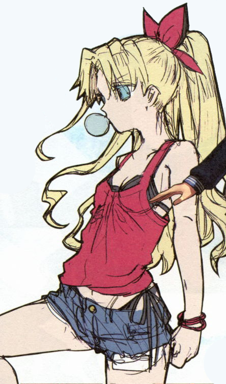 Whatever happens, by the time breakfast is in full swing, you can find her in the library. All of the chairs are comically undersized for her, so she simply sits down on the floor, a modest stack of books piled beside her. The books are also comically undersized, so she has to hold whichever she's reading very close to her face, turning each page with a delicacy which might be unexpected coming from her. Most of them are about ancient history, but the Bible+ and parkour book from the vending machine are also present. So is the handheld gaming device some people might also be familiar with, which can only lead to disaster.